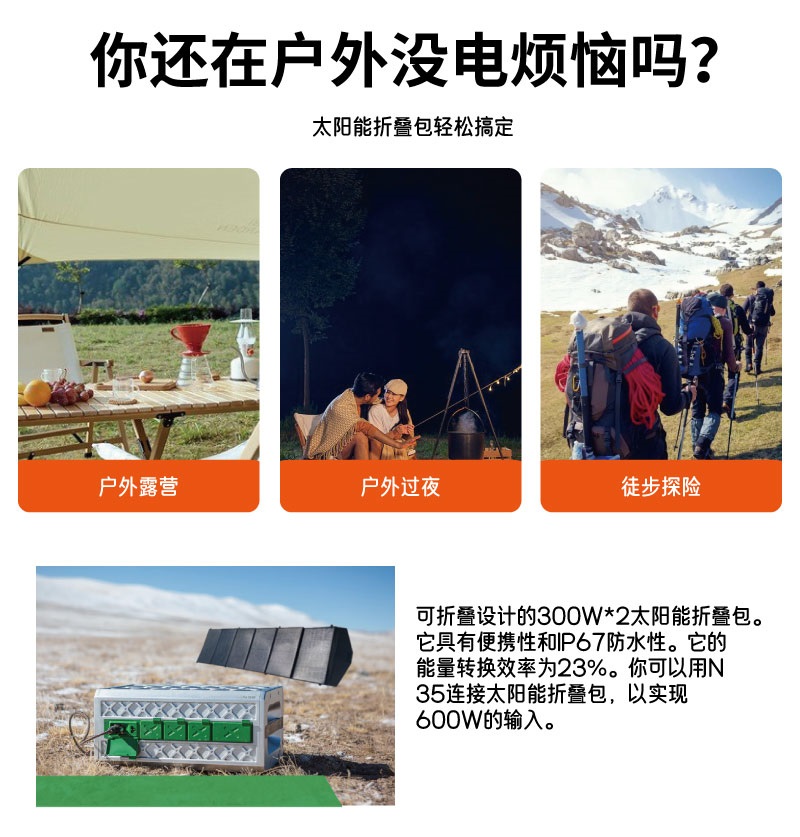太陽能板600瓦大功率便攜折疊包配1800W戶外極寒天氣儲能移動(dòng)電源